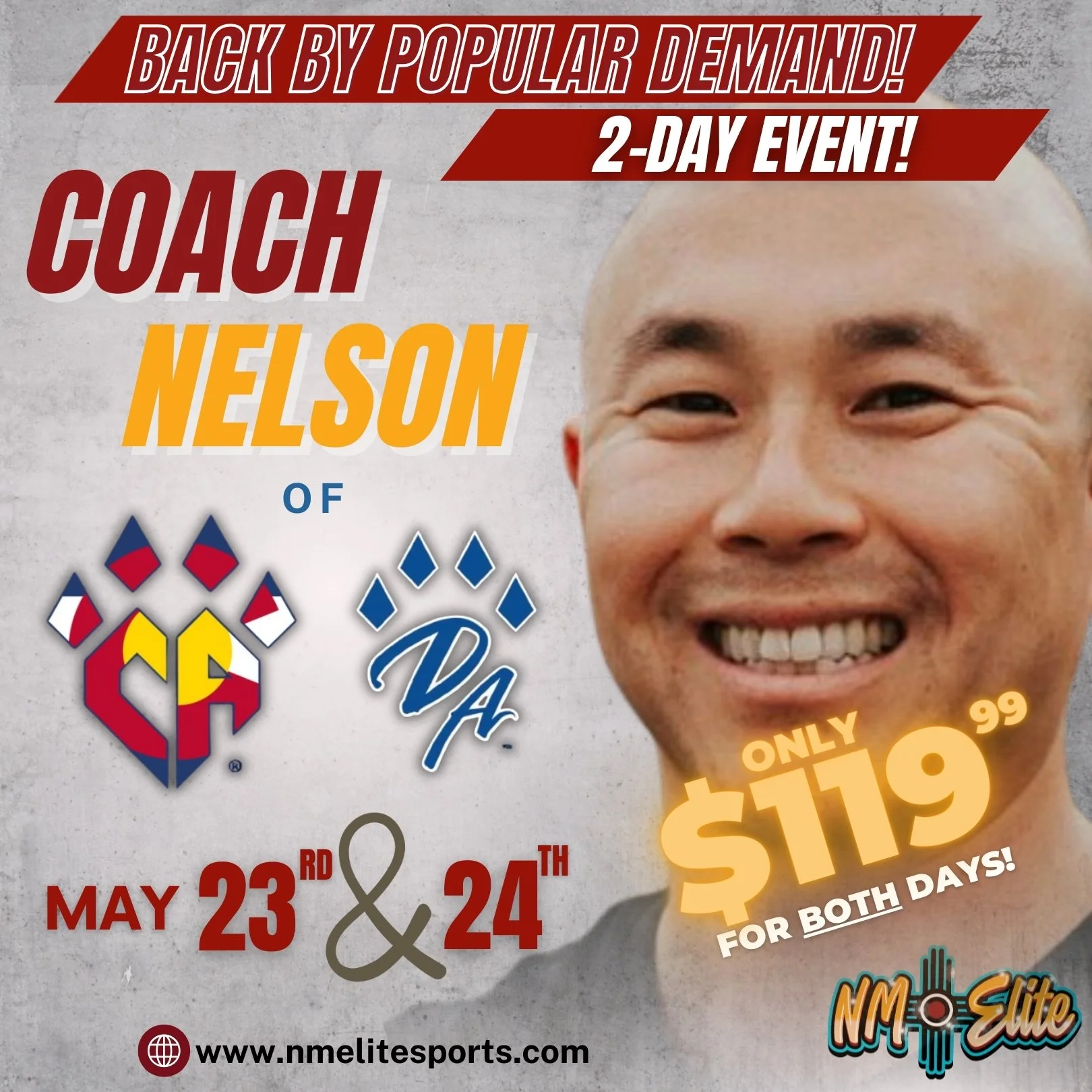 Don't miss this tumbling clinic! Nelson, one of the best and most experienced tumbling coaches in the industry, makes a long-awaited visit to NM Elite! Coach Nelson will offer three clinics - Walkovers, Handsprings, and Flips & Twists. Tuition of $119.99 (per clinic type) covers TWO DAYS, 2.5 total hours, of immersive tumbling instruction on Saturday, May 23rd & Sunday, May 24th! Please do not hesitate to contact us HERE if you have any questions. See you there!